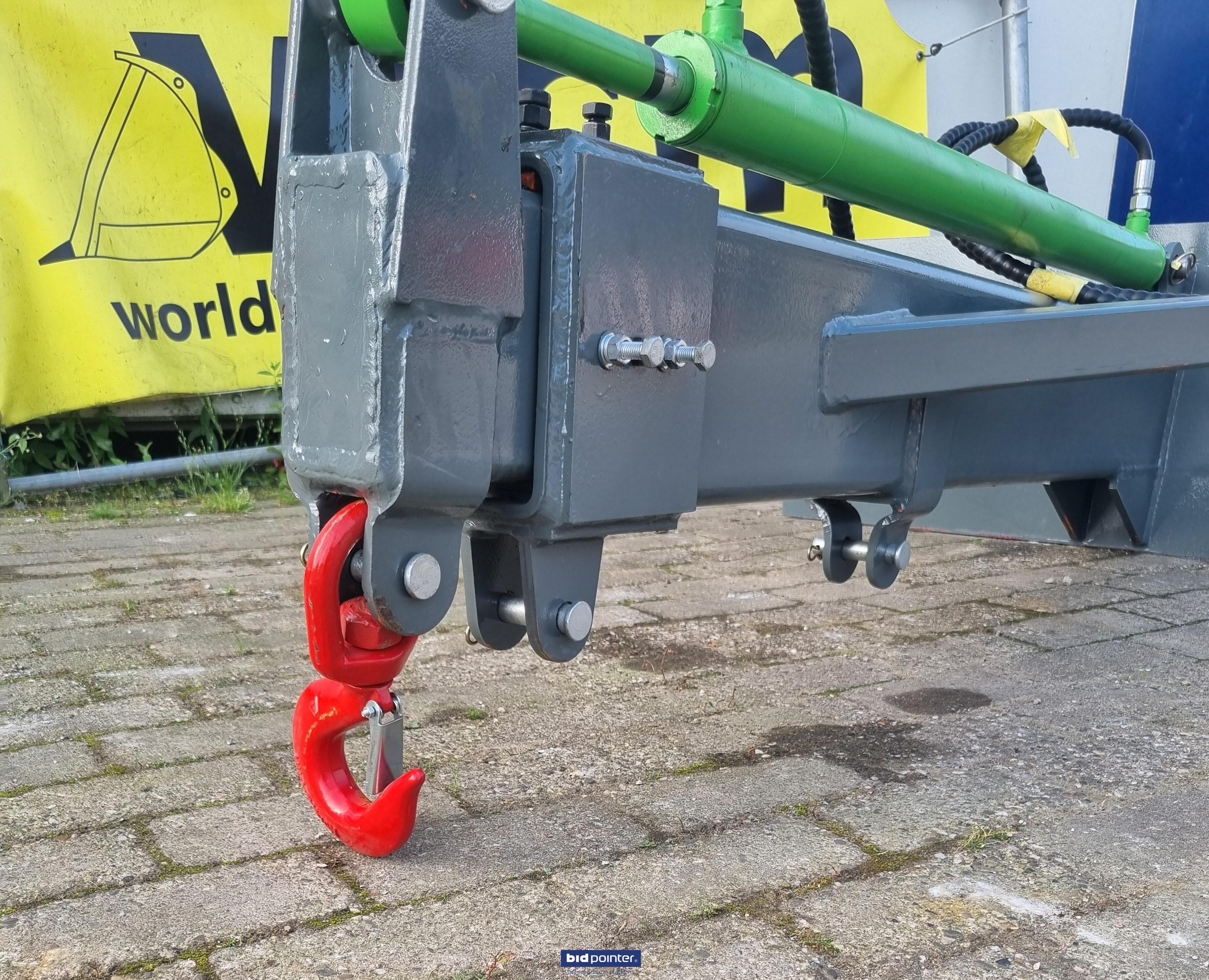 WCM Hydraulische JIB 5 ton. De aanlasplaat is geschikt voor elk soort shovel en graafmachine-aansluiting om er op te lassen. Lengte: 1560 mm. Breedte: 1120 mm. Hoogte: 560 mm. Aanlas plaat lxh: 1120 x 450 mm. Mast lengte ingeschoven: 1560 mm. Mast lengte uitgeschoven: 2560 mm. Gewicht: 120 KG.
