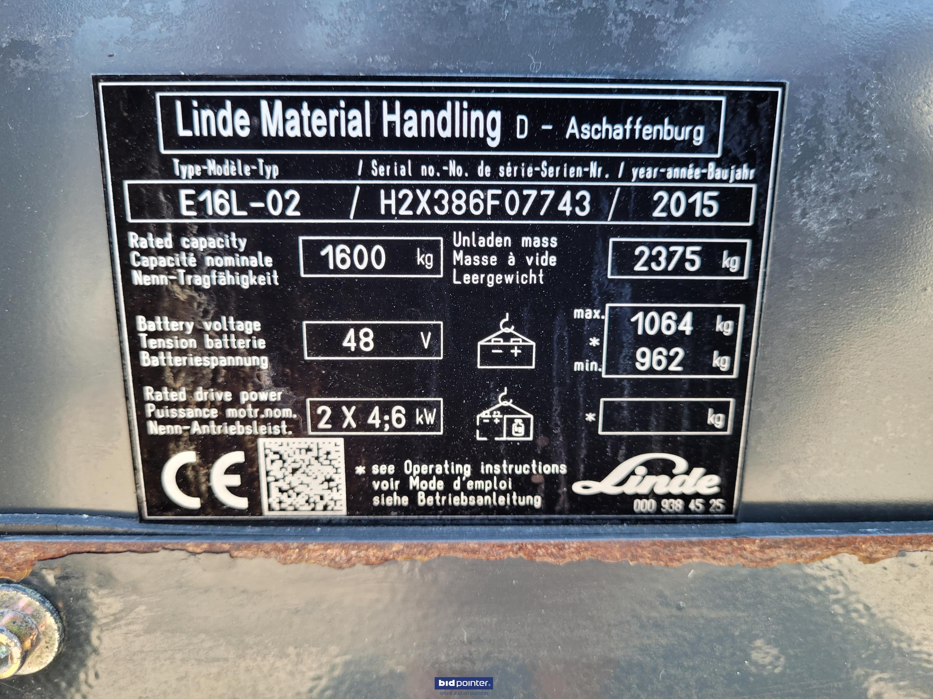 Linde E 16 -02 elektrische heftruck 3 delige mast