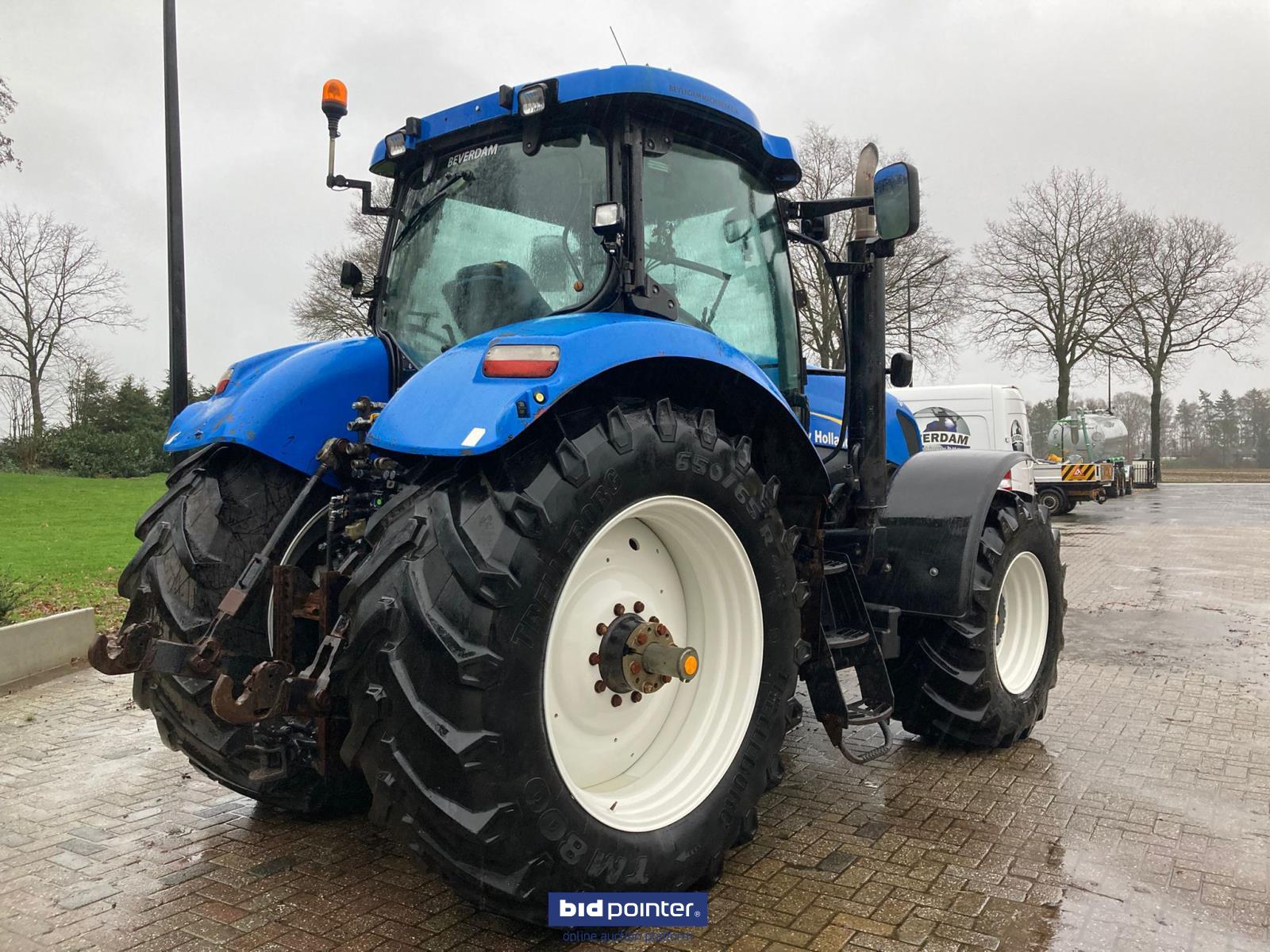 New Holland T7050 - bouwjaar: 2008 - draaiuren: 15586 - 29/12 Intellishift transmissie - 4 dubbelwerkende ventielen - Load Sensing - fronthef - kopakkermanagement - luchtremmen - airco - banden voor: 600/65R28 - banden achter: 650/65R42 - Deutsche Zulassung