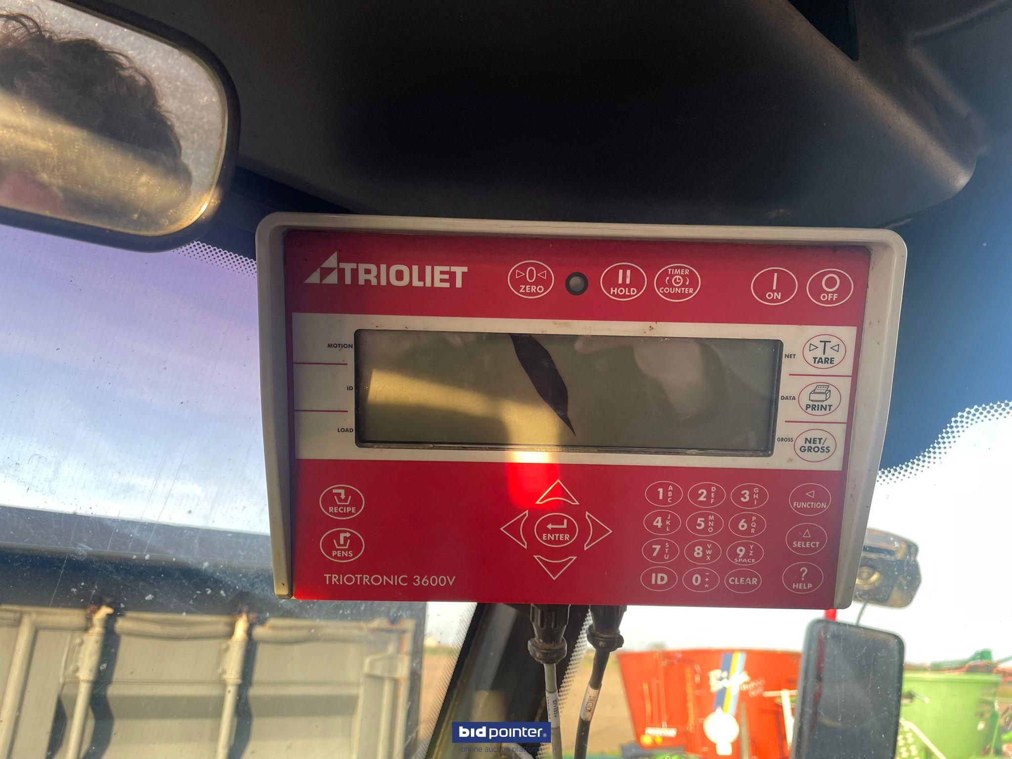 gebruikte trioliet zelfrijdende voermengwagen met een inhoud van 24m3. de triotrac heeft 4 wielbesturing en een weeginrichting. hij heeft een losband vooraan de bak en losdeuren links, rechts en achter de wagen. ook zit er een bewegend mes aan. heeft een NL kenteken