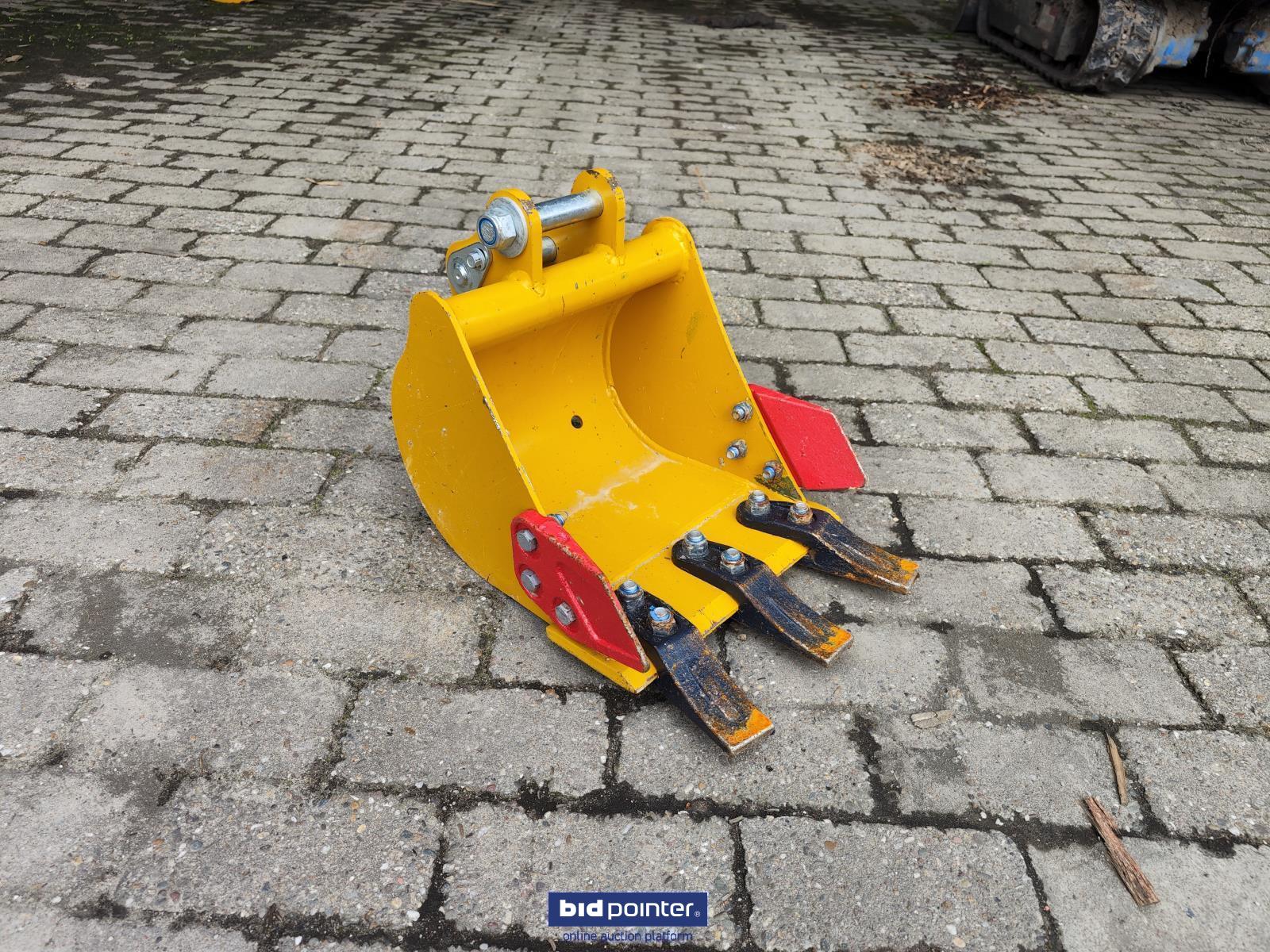1.2tons WCM Minigraver met bak en rippertand. Specificaties: CTX8010 Hydrauliek druk: 16 Mpa Hydrauliek flow: 16.8 L/min Max. Hijsvermogen: 500kg Hydrauliek koeler aanwezig met extra functie Kleur: geel Eigen gewicht: 1200 kg Rijwerk: rupsen Rijsnelheid: 1.5 km/u Volume schepbak: 0.02 m³ Max. graaf diepte: 1745 mm Max. stort hoogte: 1919 mm Max. graaf radius: 3017 mm Max. graaf hoogte: 2842 mm Afmeting: 2150 x 950 x 1600 (hxbxl)