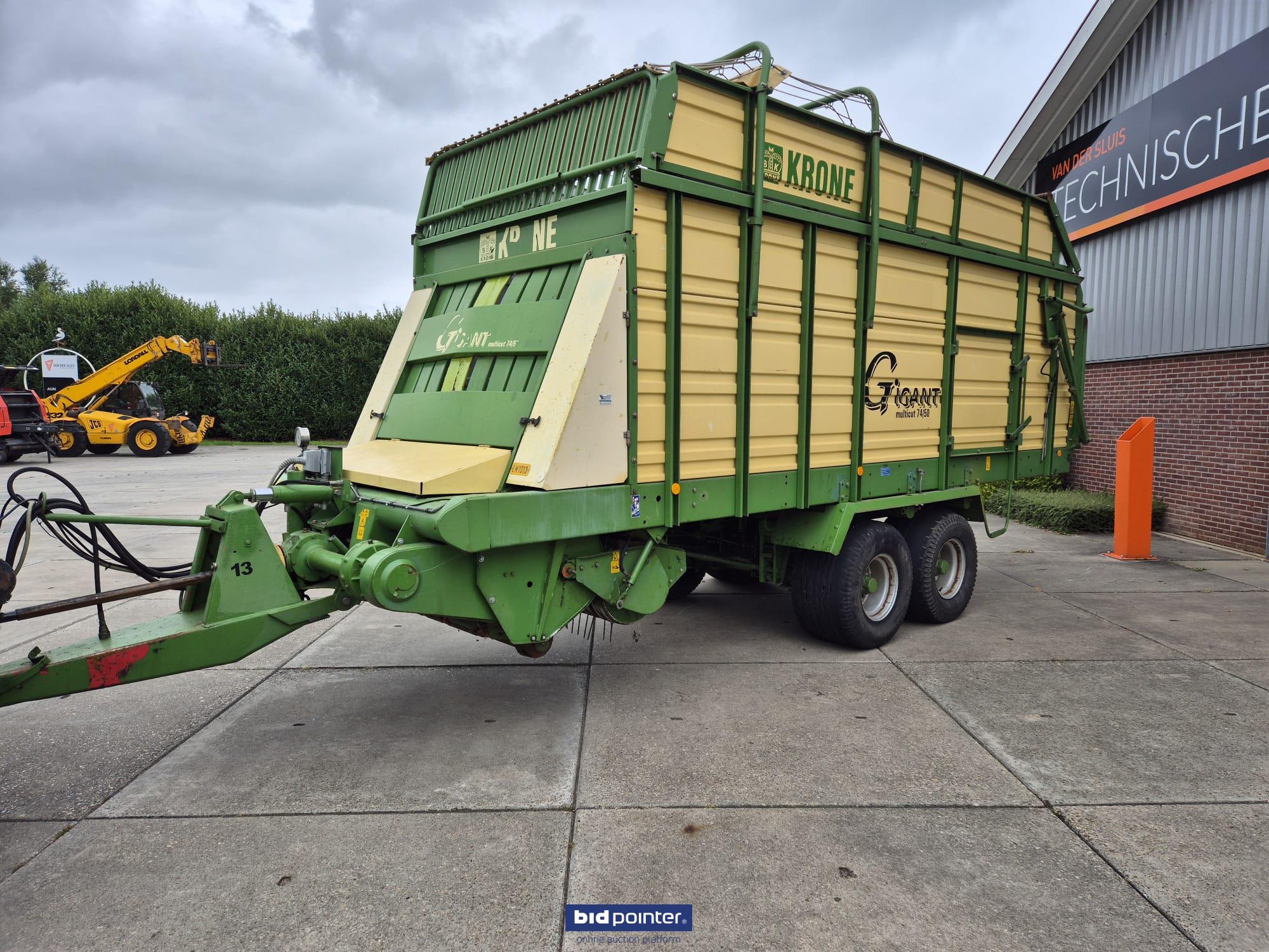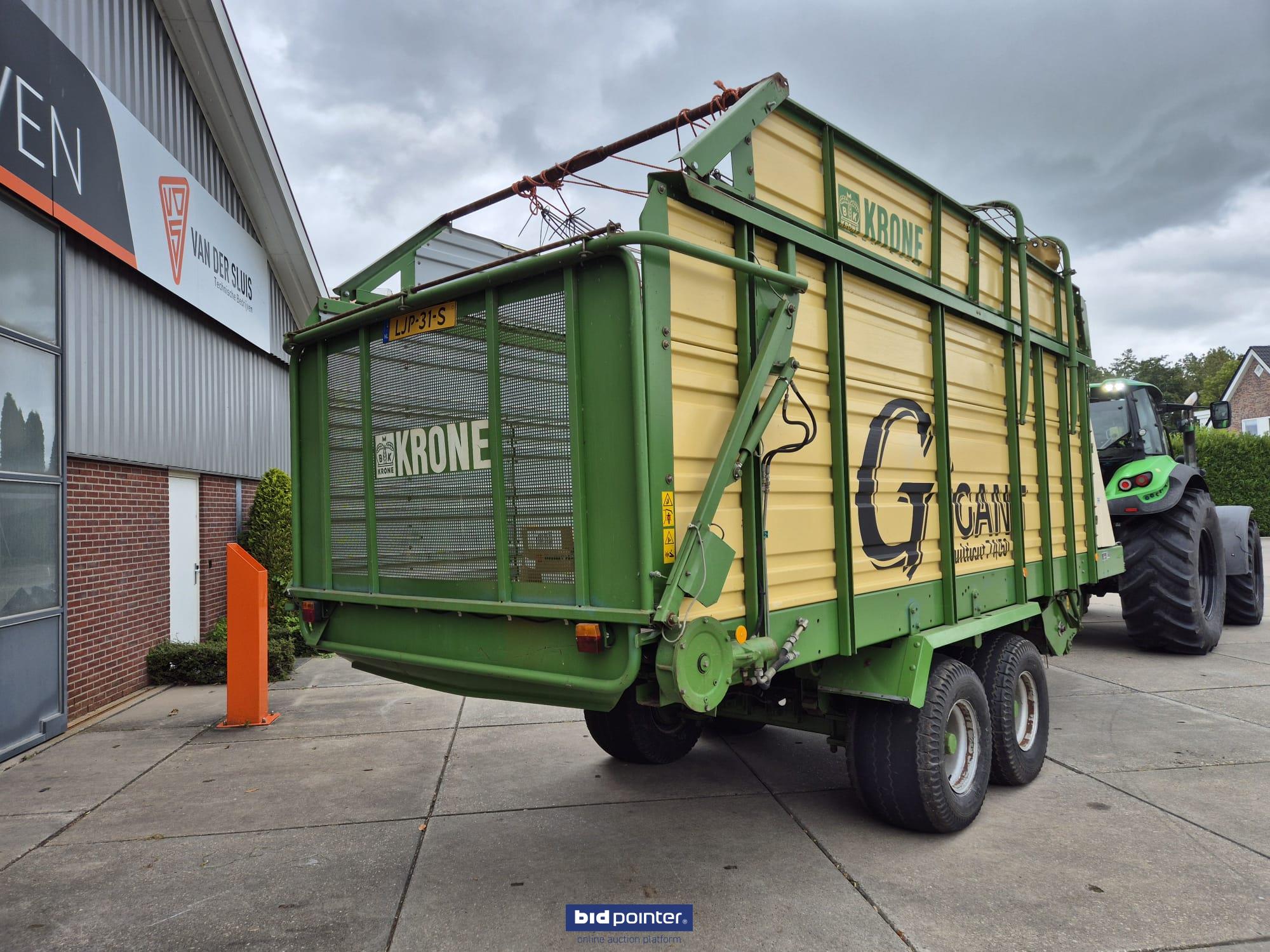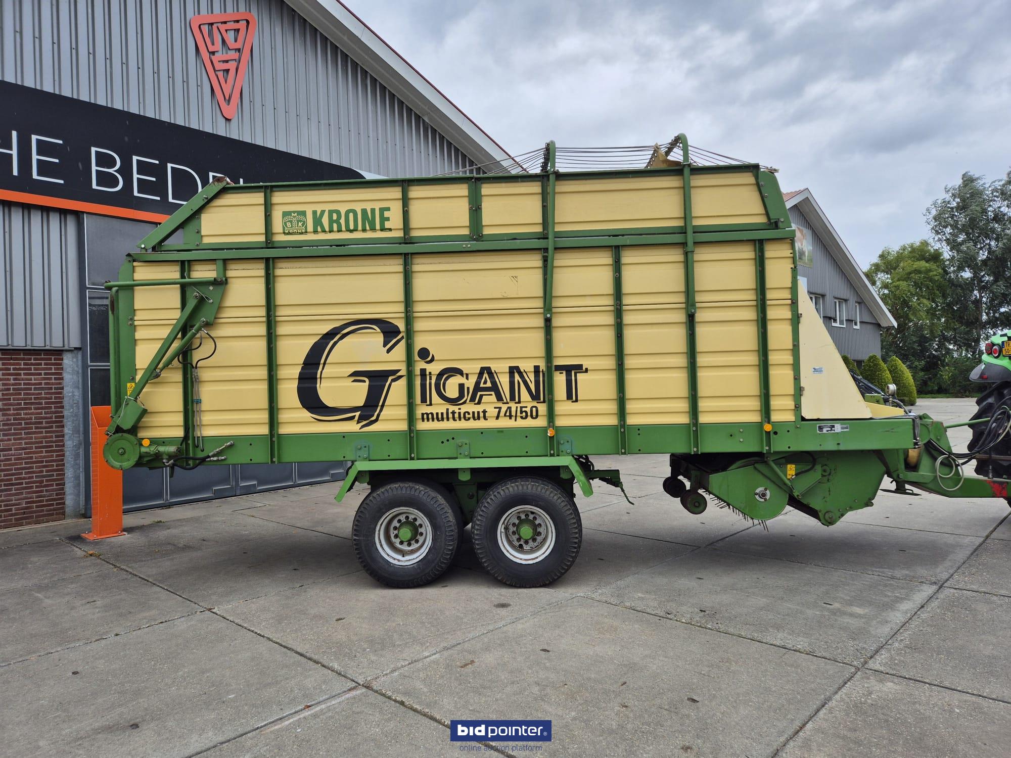 Krone Gigant 74/50 forage wagon. Complete and in working condition, with registration. Taken in as traded. Equipped with tandem axle, rotor intake, braked and sprung axles, hydraulic adjustable drawbar and electric/hydraulic controls. Neat and fully functional wagon.