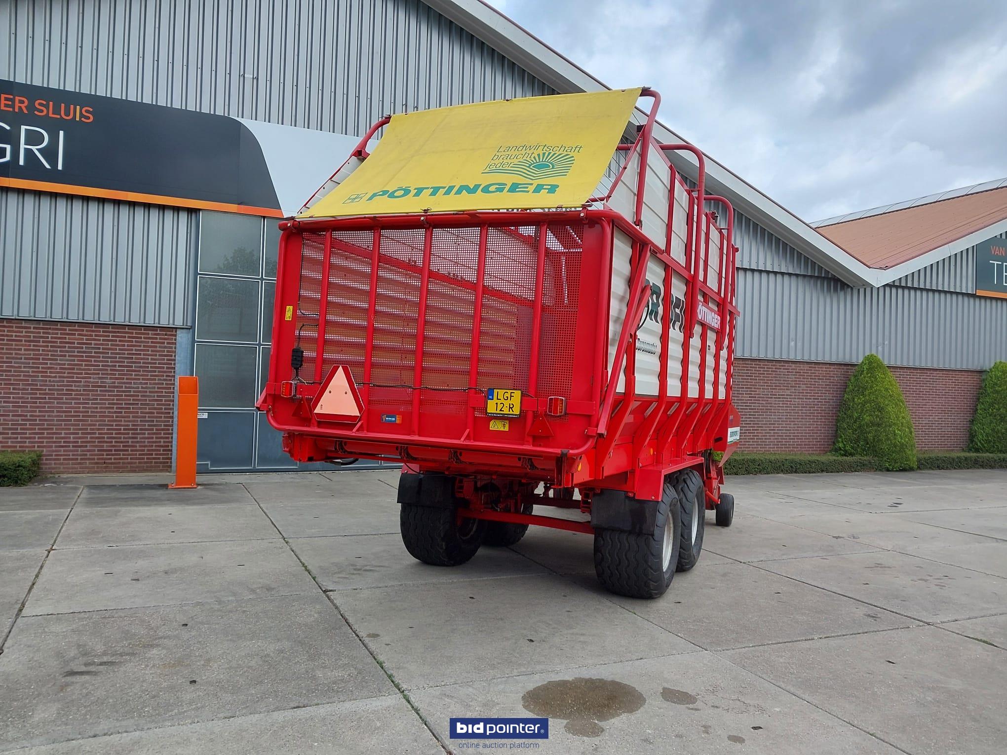 Pöttinger Europrofi 3 opraapwagen, bouwjaar 2001, 32 m³. Tandem met banden 500/50-17, rotor-invoer en snij-inrichting. Geremde en geveerde assen, hydr. verstelbare dissel en elektr./hydr. bediening. Voorzien van nieuwe pick-up. Volledig nagekeken en klaargemaakt.