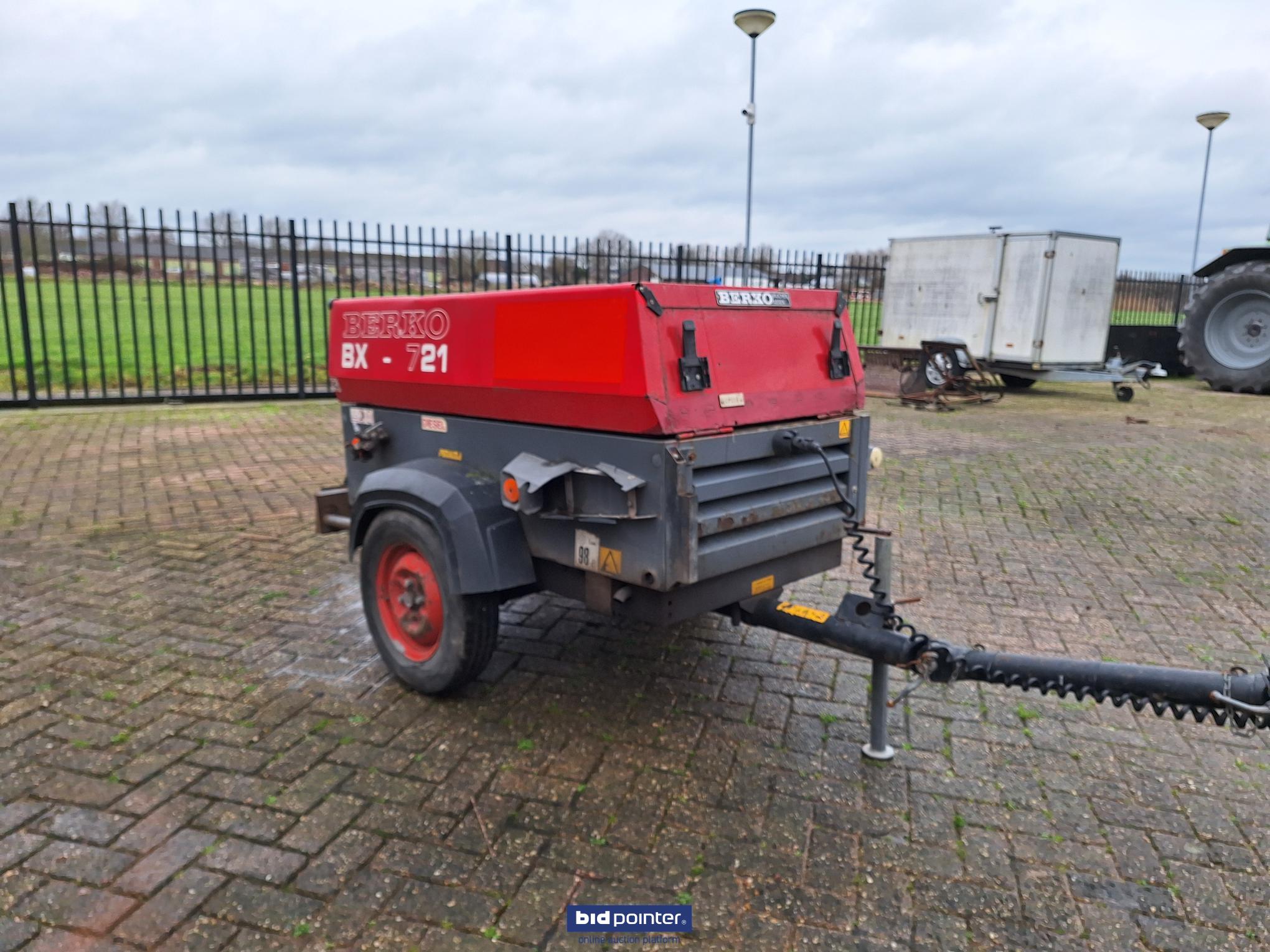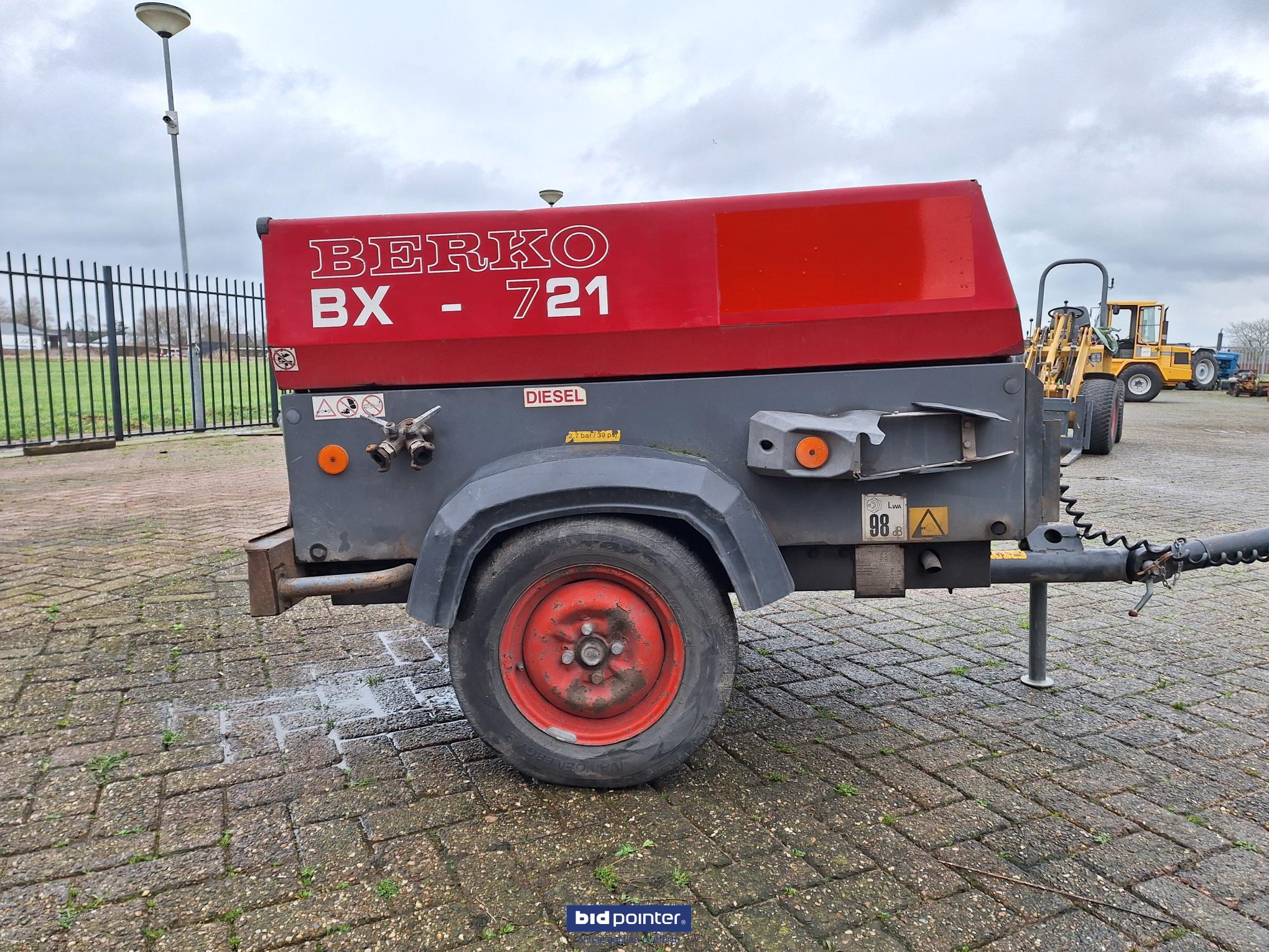 EN: Berko BX-721, air compressor, year 2007, 3 cylinder Yanmar diesel engine, including 3 hoses and 4 hammers