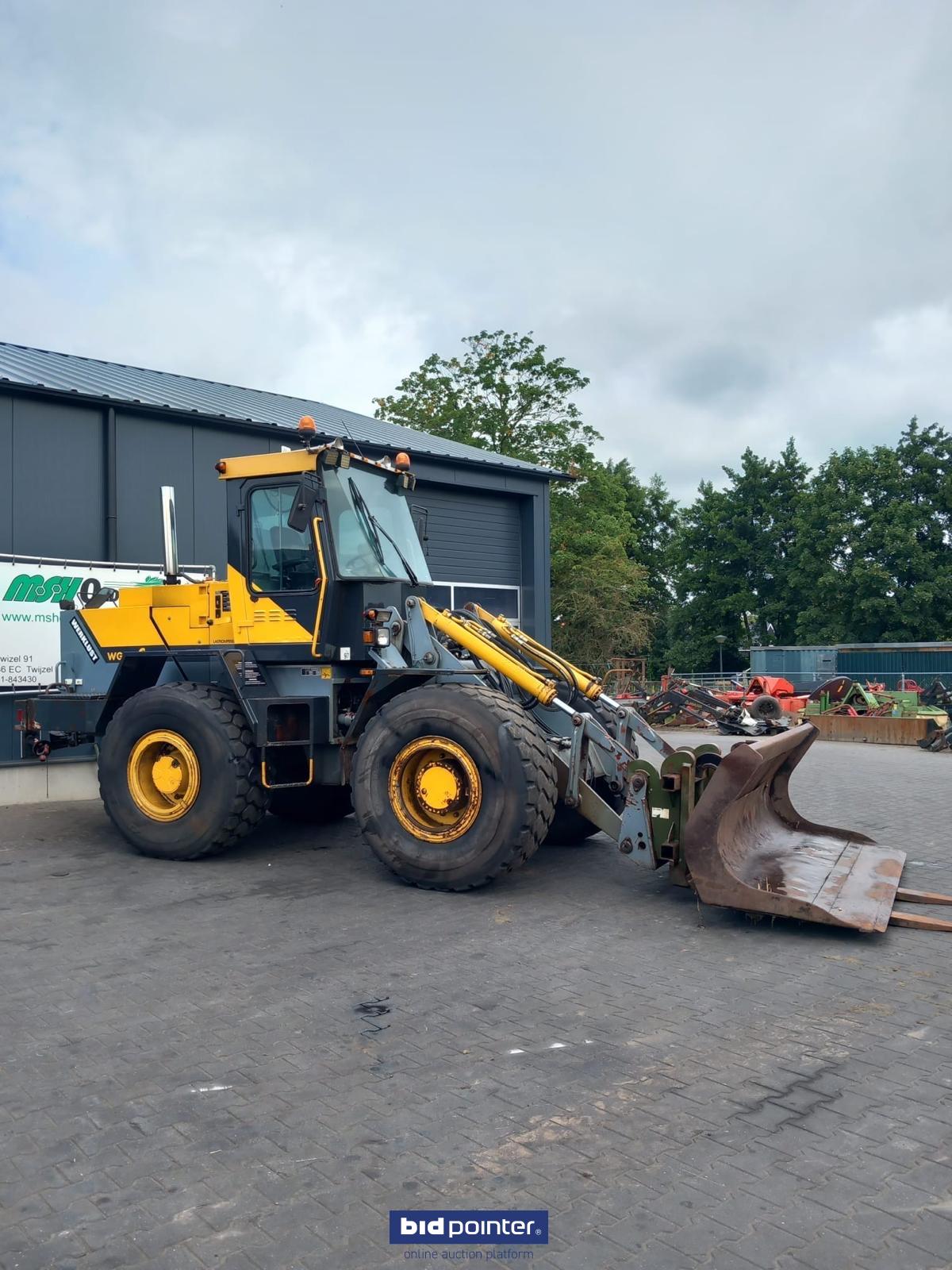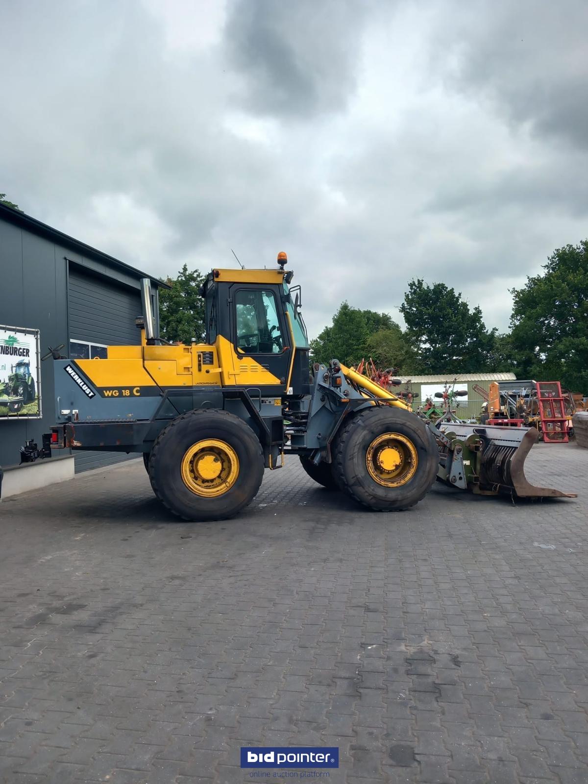 Werklust shovel with bucket and pallet fork. Noise in the gearbox.