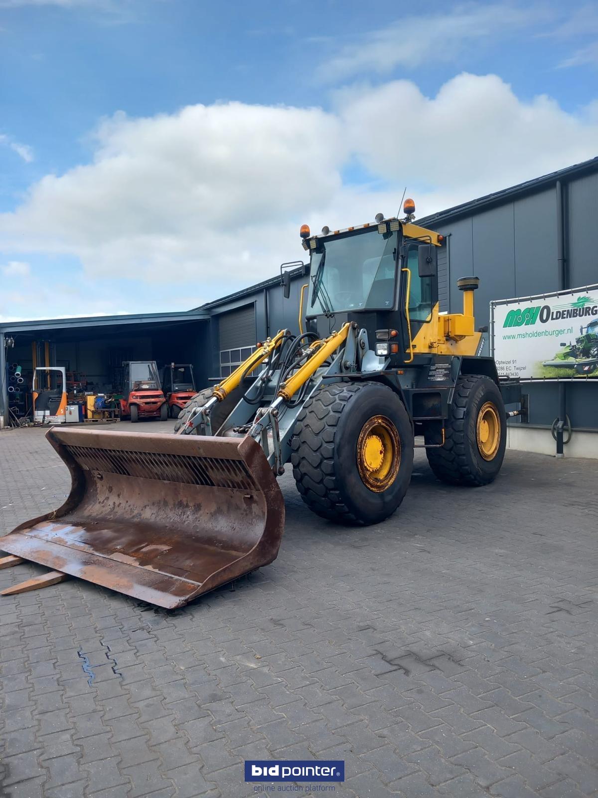 Werklust shovel met bak en palletvork. Maakt lawaai in versnellingsbak