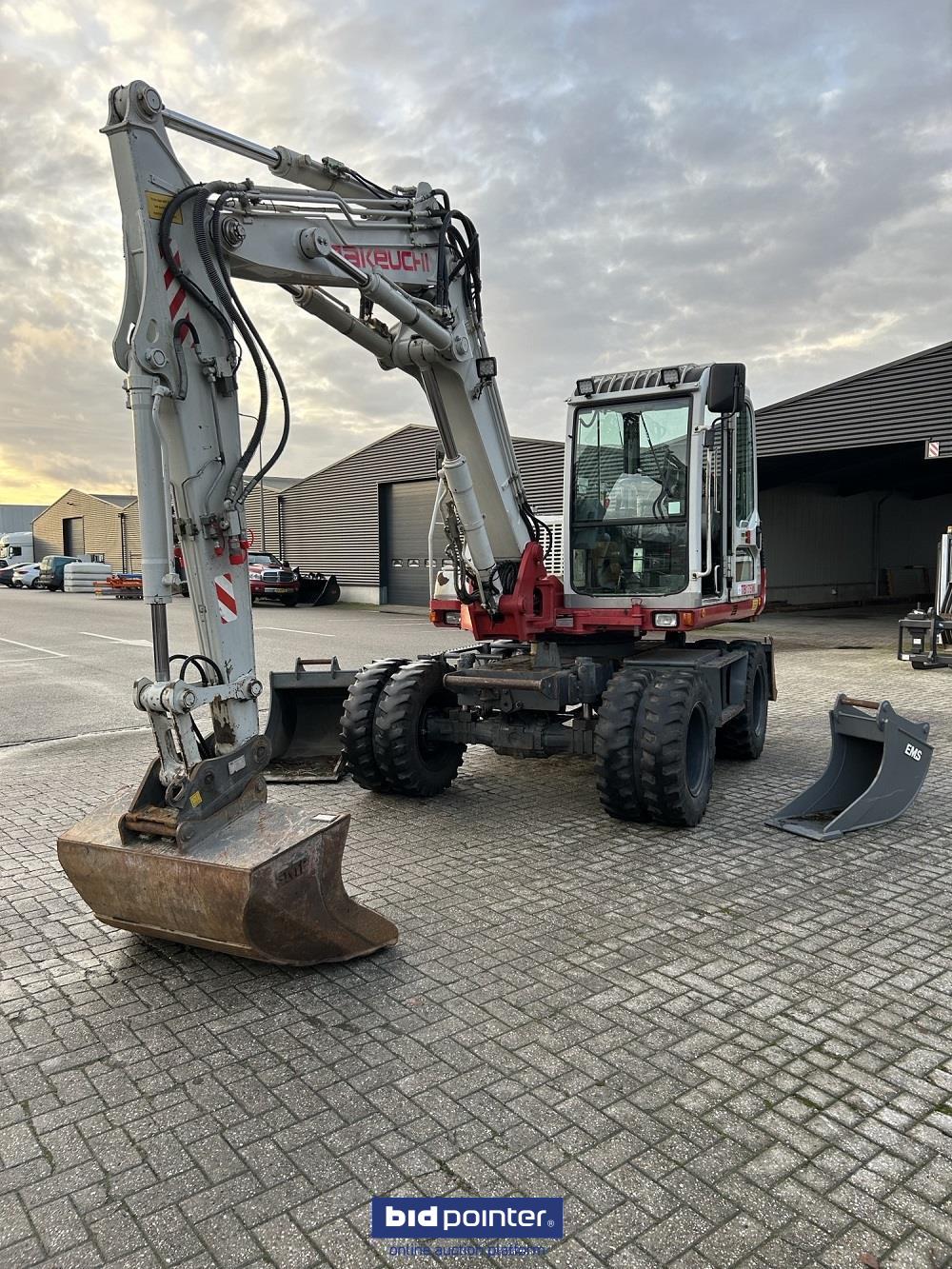 Mobiele graafmachine, met verstelgiek, snelwissel en 3 bakken.