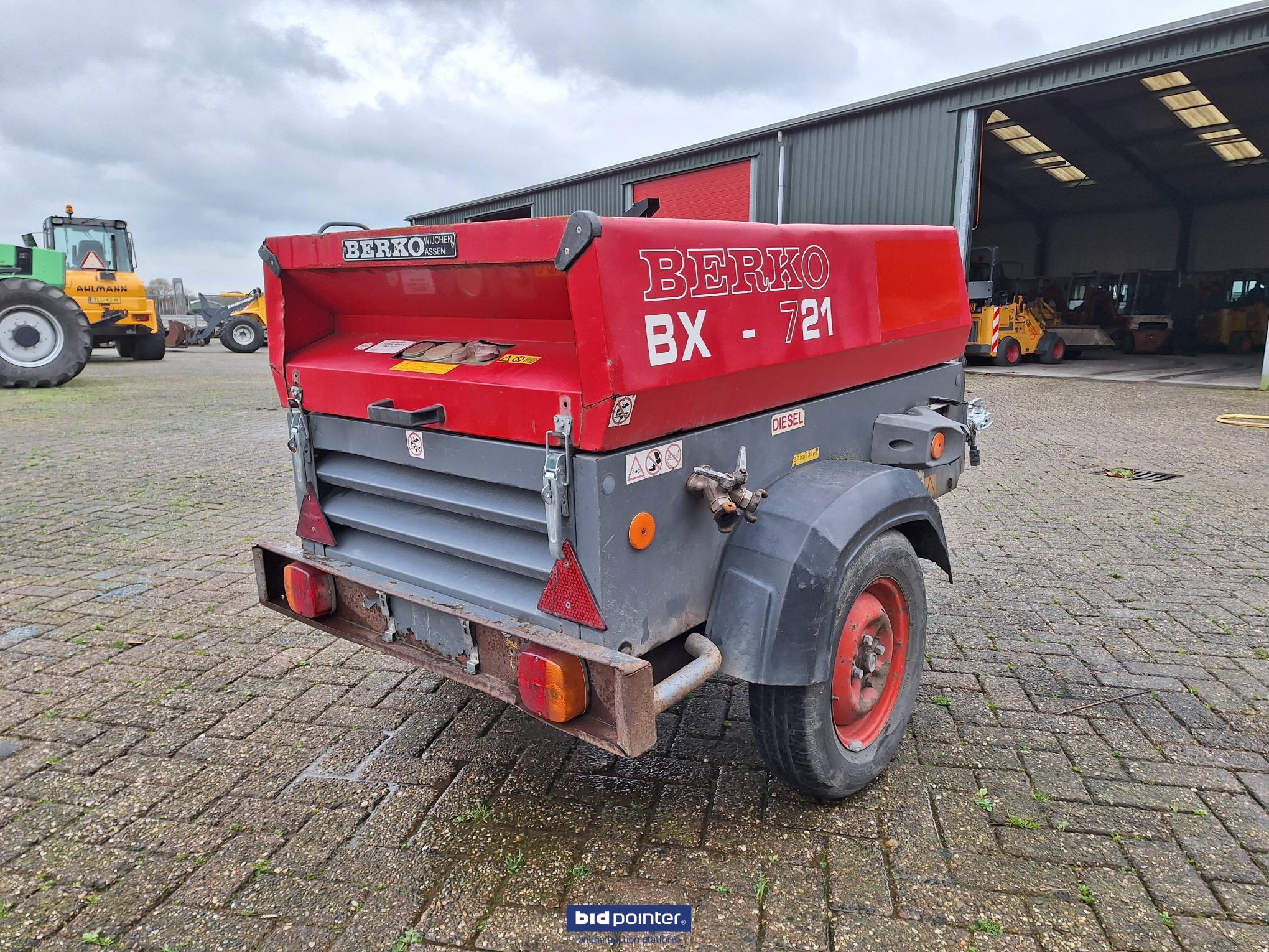 EN: Berko BX-721, air compressor, year 2007, 3 cylinder Yanmar diesel engine, including 3 hoses and 4 hammers