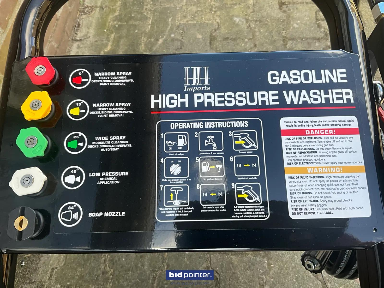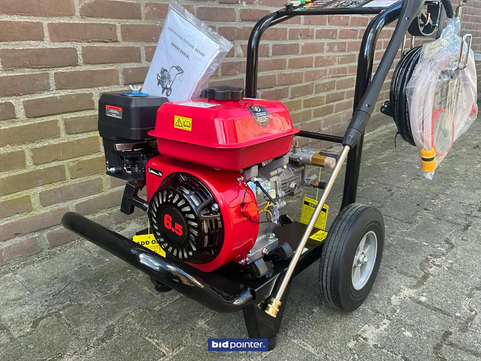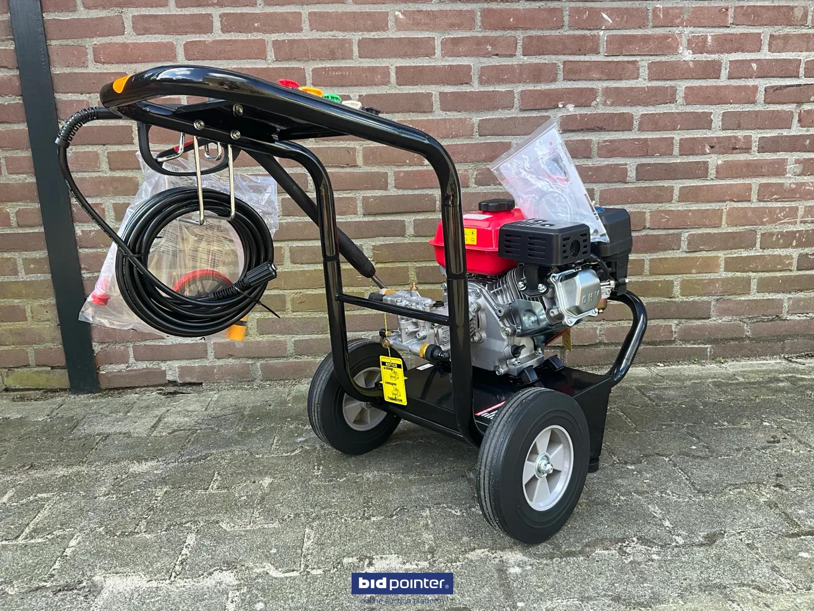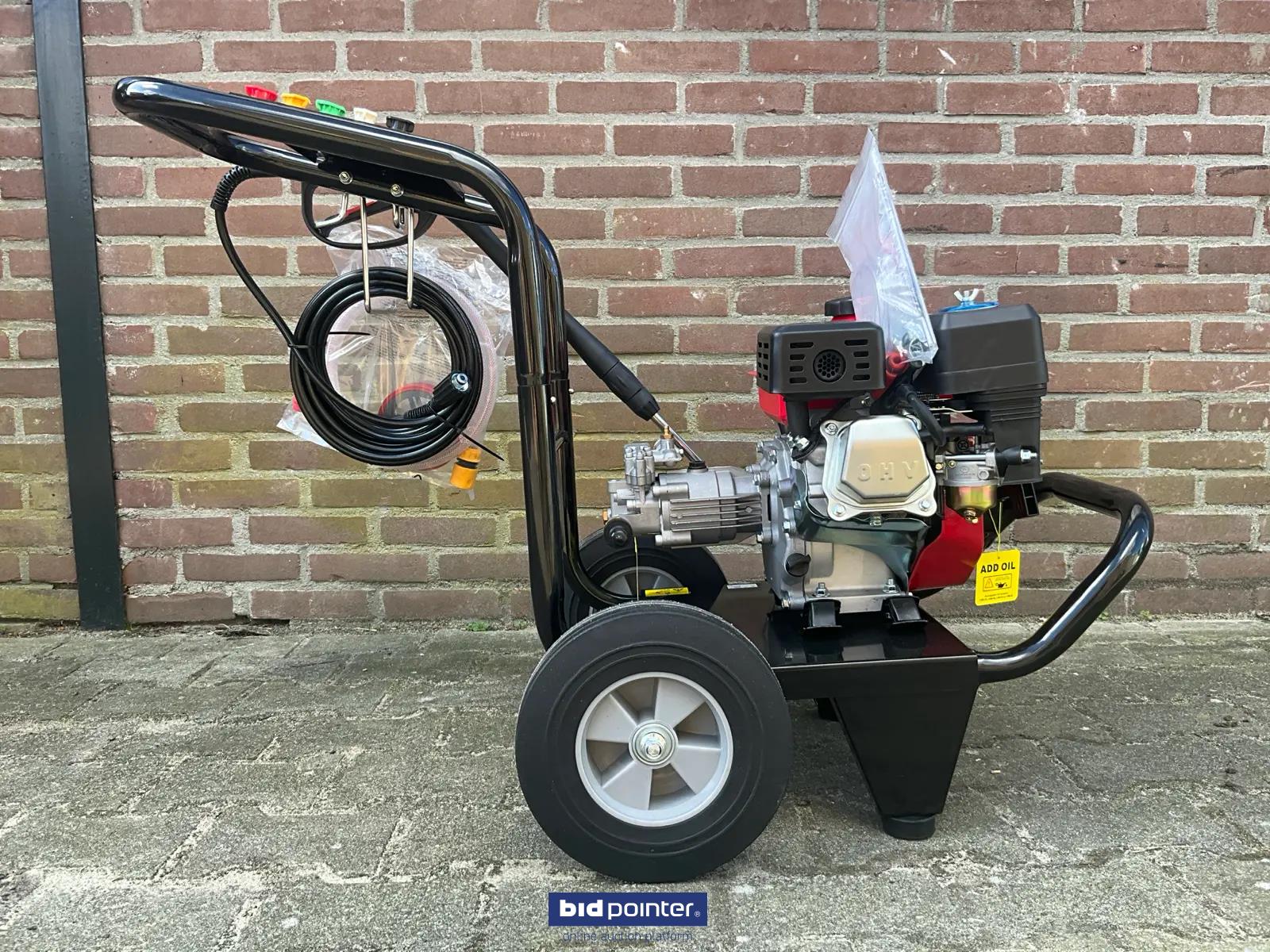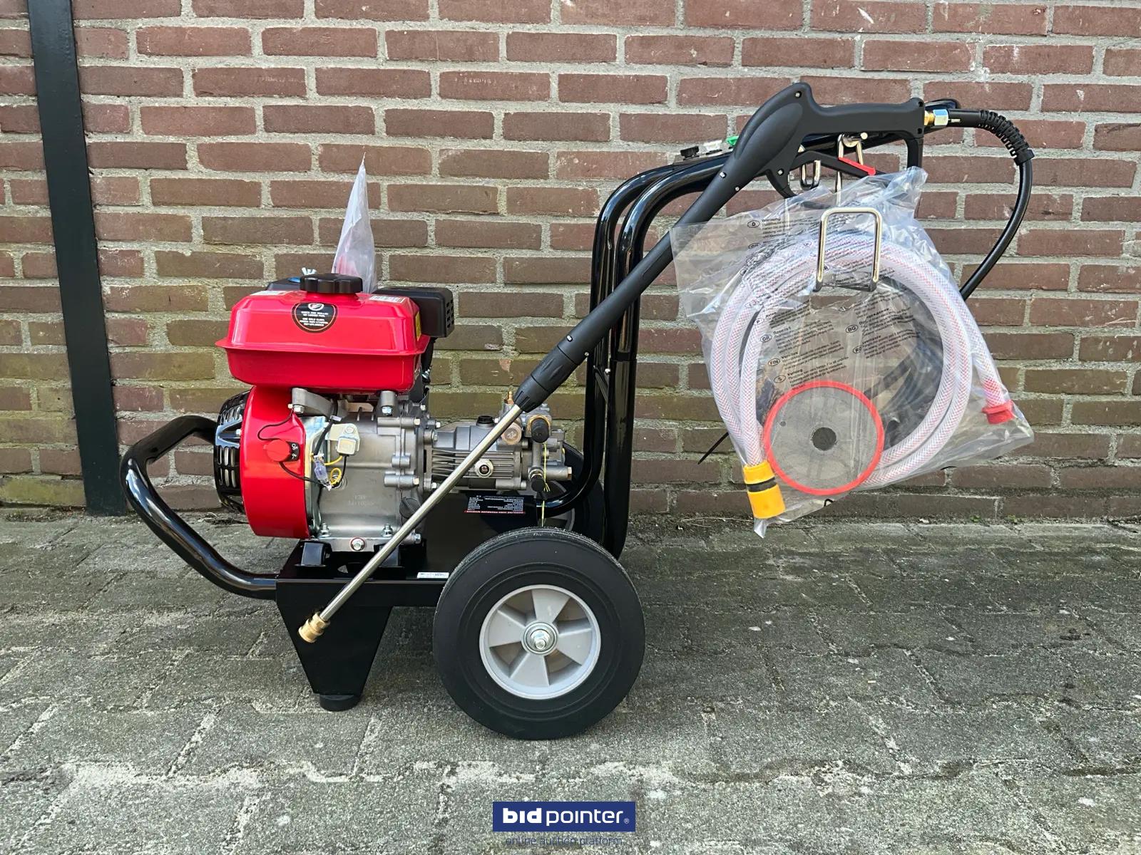 HH - 2025 - 170B - Benzine Hogedrukreiniger, met een benzine motor; nominale druk 2200psi; toegestane druk 2500psi; nominale stroomsnelheid 8,5lpm; maximale stroomsnelheid 9lpm; vermogen 6,5 pk; nominale snelheid 3400 tpm. DE: HH - 2025 - 170B - Benzin Hochdruckreiniger, mit Benzinmotor; Nenndruck 2200 psi; zulässiger Druck 2500 psi; Nenndurchfluss 8,5 l/min; maximale Durchflussrate 9 l/min; Leistung 6,5 PS; Nenndrehzahl 3400 U/min. EN: HH - 2025 - 170B - Gasoline High-pressure cleaner, cleaner with a gasoline engine; nominal pressure 2200 psi; permissible pressure 2500 psi; nominal flow rate 8.5 lpm; maximum flow rate 9 lpm; power 6.5 hp; nominal speed 3400 rpm.