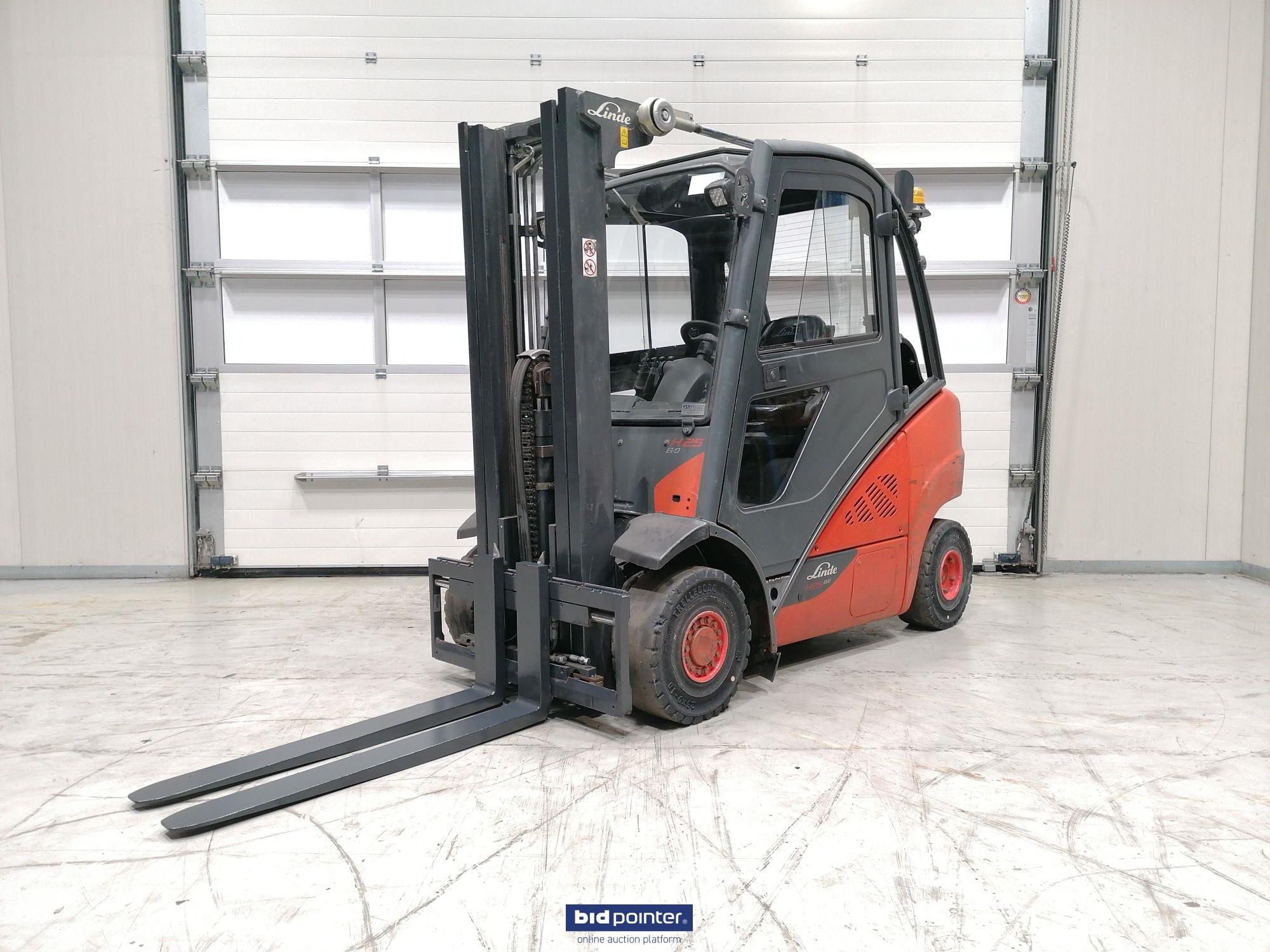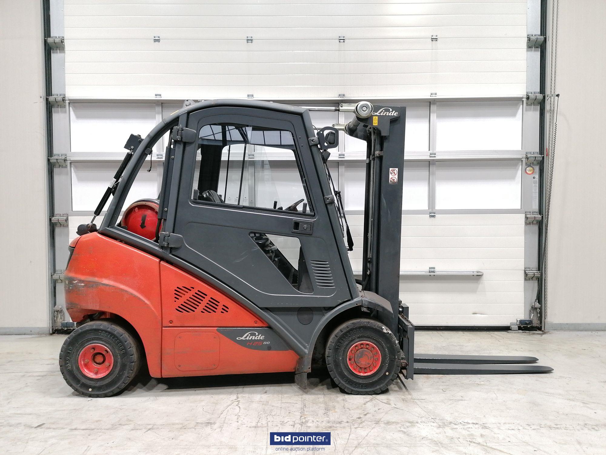 Linde H25T-02 LPG vorkheftruck, 2500kg hevermogen, 4710mm triplex mast, side shift, cabine, 4 de ventiel, goed werkend