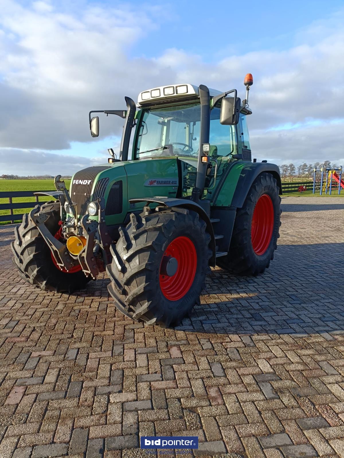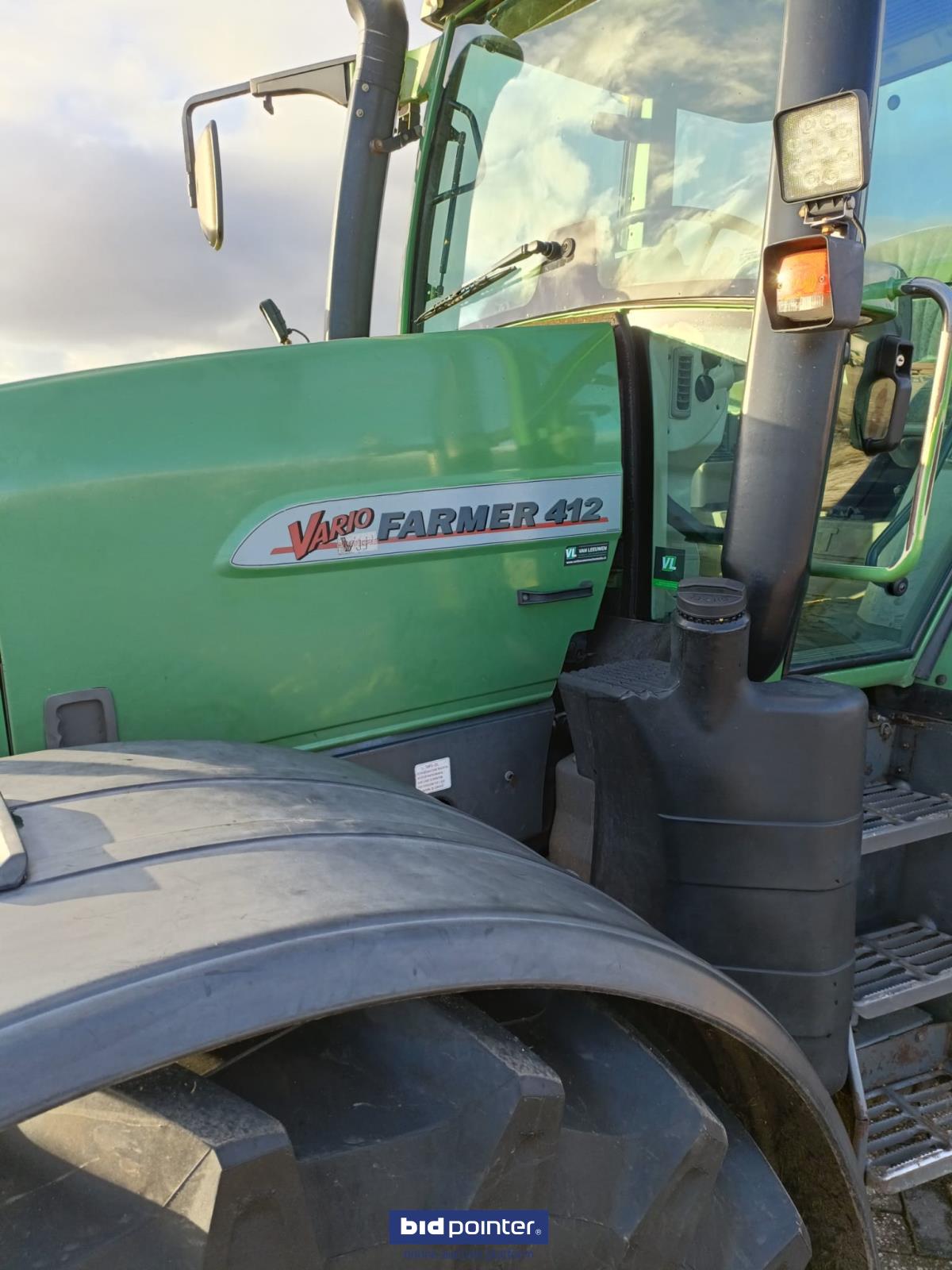 Fendt Farmer 412 Vario - Fronthef PTO - LED halogeen werkverlichting - 3x DW ventiel aan achterzijde - 1x ventiel voorzijde - Remventiel hydraulisch - Airco - Hef PTO bediening op spatbord - Trekhaken en topstangen volgens foto's Banden: - Voor 540/65R26 - Achter 650/65R38